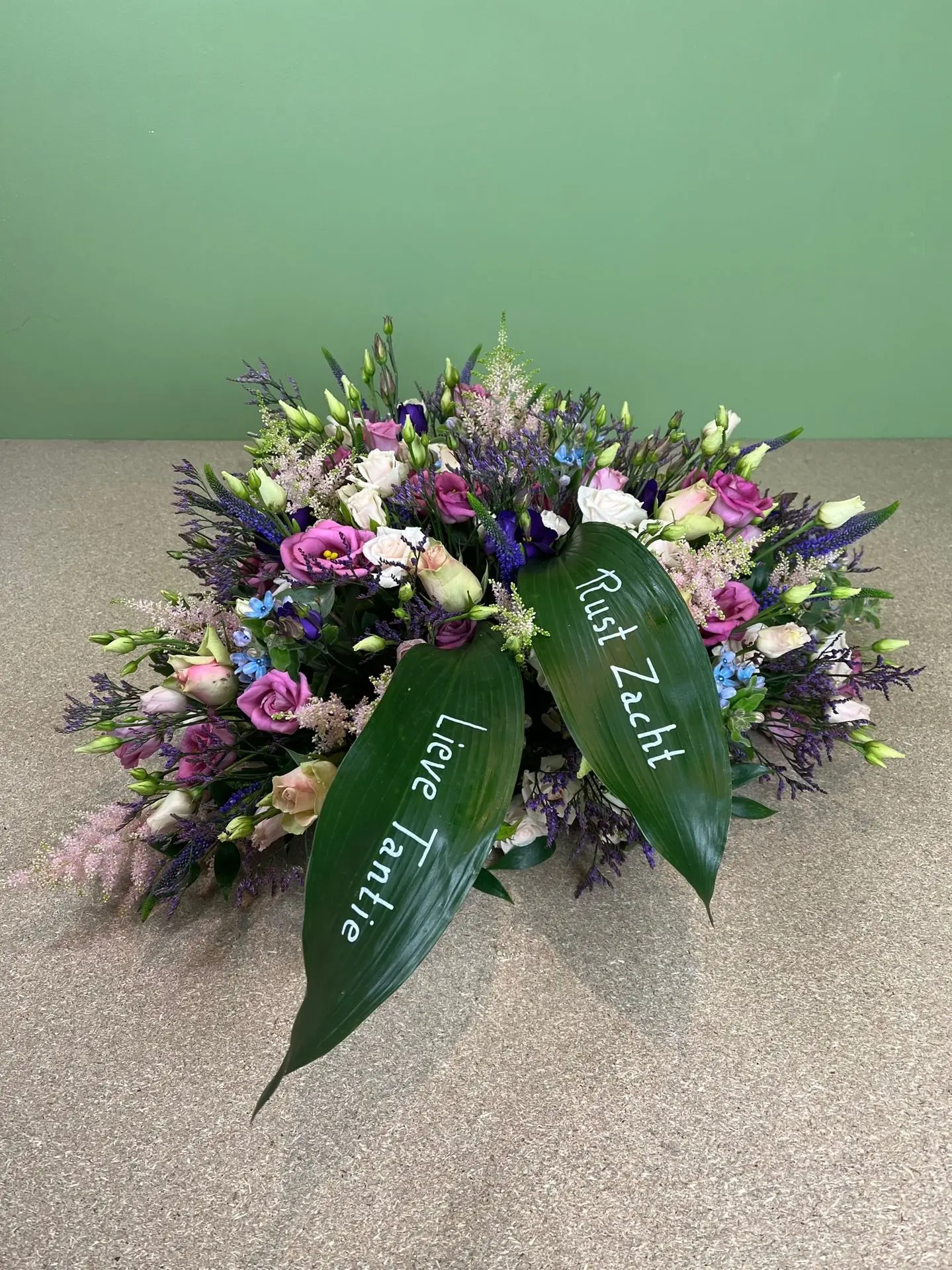 Je hoeft geen ervaring te hebben met het maken van afscheids bloemen. We werken samen om de bloemen op een mooie manier te combineren tot een prachtig arrangement. Je kunt zelfs een persoonlijk item toevoegen aan het bloemstuk, waardoor het nog specialer wordt. Het resultaat is echt iets van jullie! Op deze manier kunnen we samen het verdriet vormgeven en het bloemstuk kan een bijzondere plek krijgen op de kist, dicht bij je dierbare. Heb je interesse? Neem dan contact met ons op!
